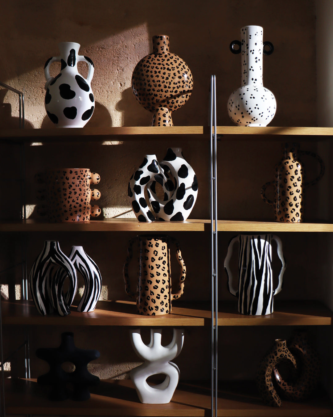 Toujours fabriquée à la main, la collection Kemet est Inspirée des motifs animaliers— léopard, zèbre, vache ou dalmatien — et réinterprète l’instinct sauvage pour les décos un peu trop sages.... Une collection entièrement faite à la main, sur les rives du Nil en Egypte.