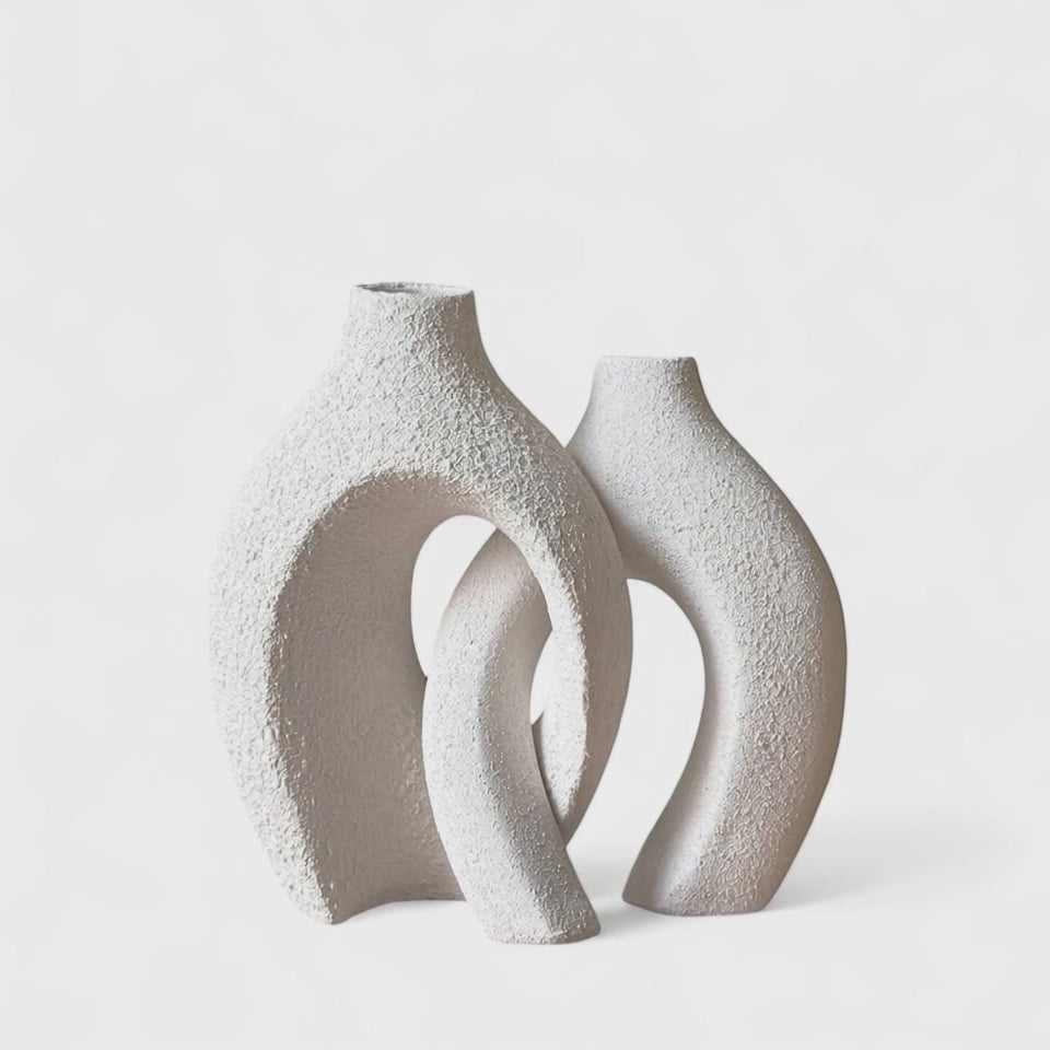 Deux vases en céramique qui ne font qu'un... Vous pourrez les exposer enlacés ou séparément. Pour décorer une table basse, un dessus de cheminée ou pour offrir en joli symbole d'amour.