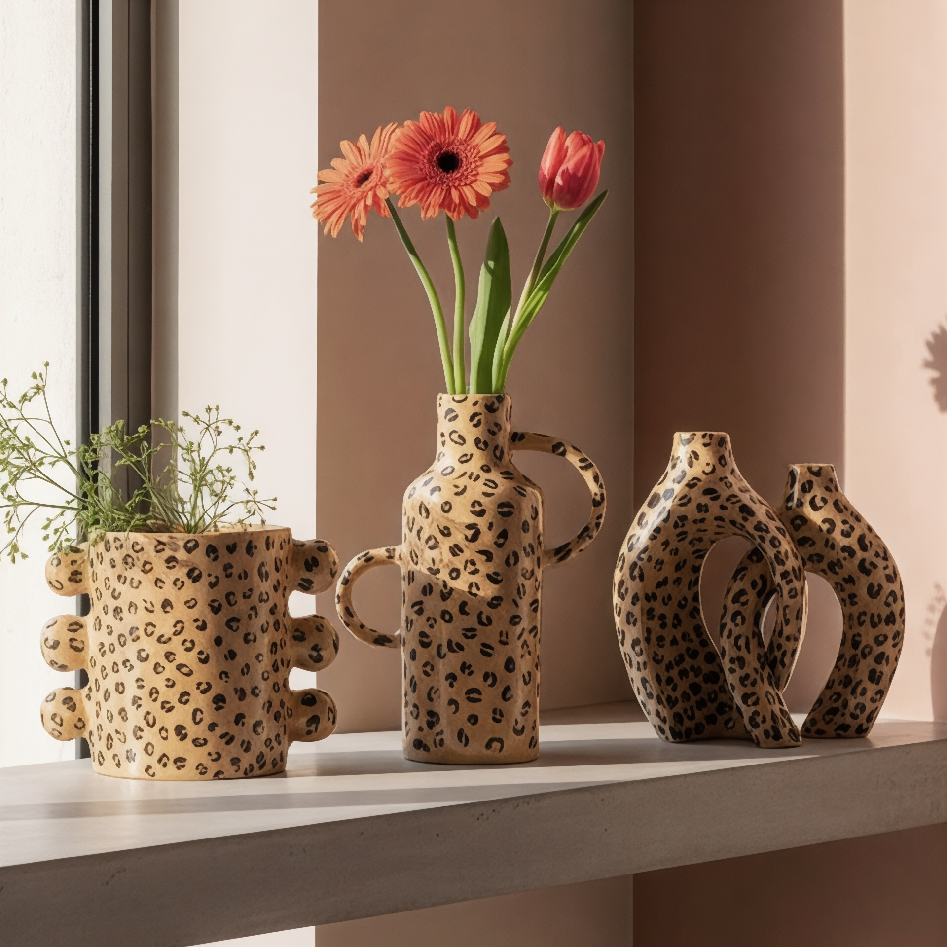 Le vase Nubia Léopard séduit par ses lignes organiques et son allure singulière. Sa silhouette arrondie, posée sur un socle élancé, en fait une pièce forte pour une déco de caractère. À laisser en objet déco ou à remplir de bouquets secs comme de fleurs fraîches.